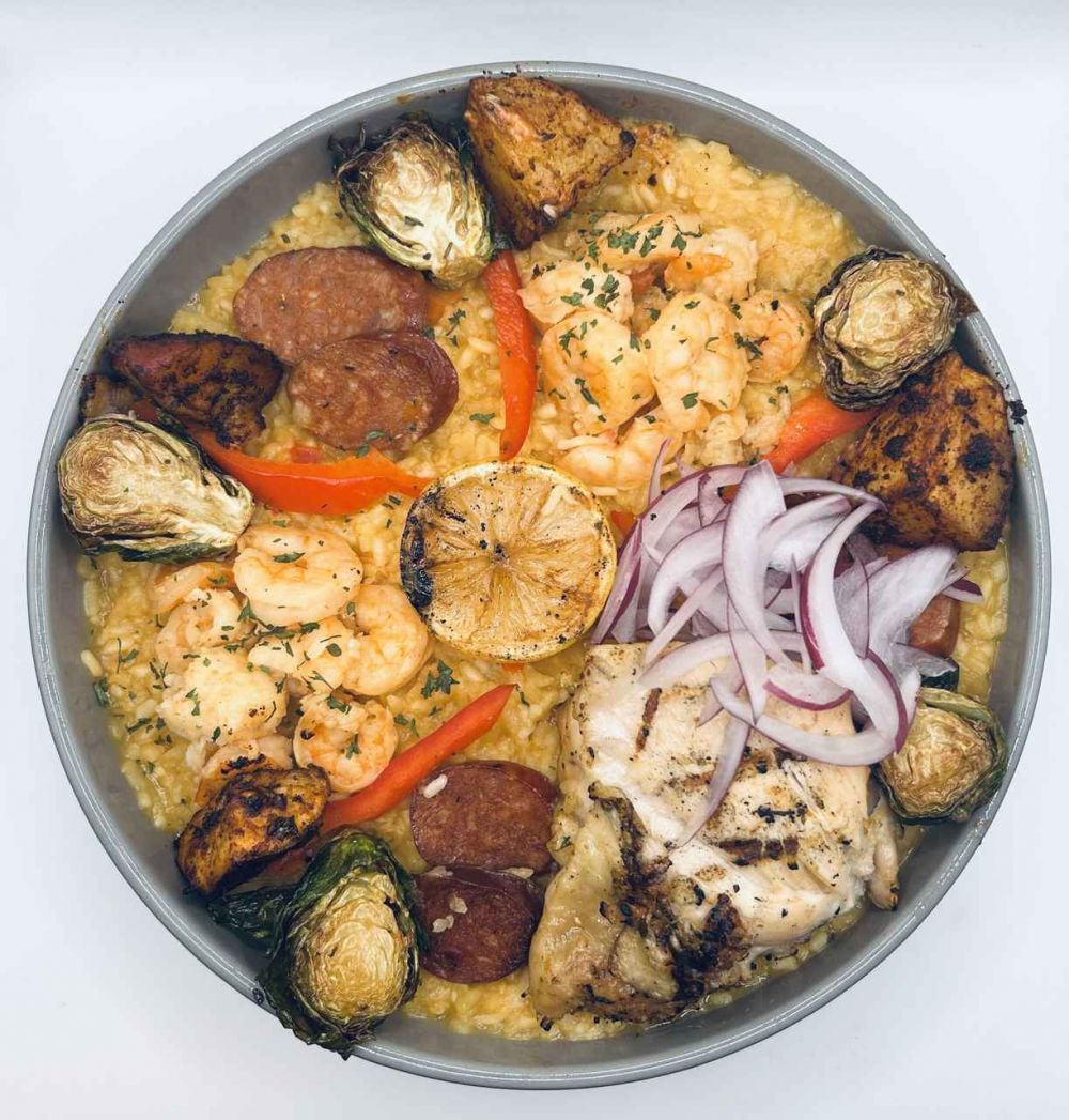 Honey Sriracha Salmon, Peppercorn Ranch Chicken, Wheatberry Rice Pilaf, Herb Roasted Green Beans, Rosemary Buttered Baguette